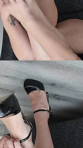 ideal footjob toejob with her flawless cute toes ebony nail polish and cums hard