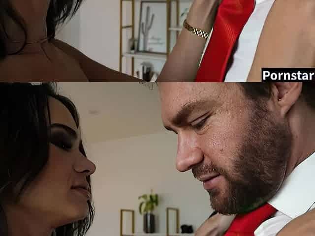 Big-boobed chick in red lingerie Ambar Lapiedra impaled by black dick