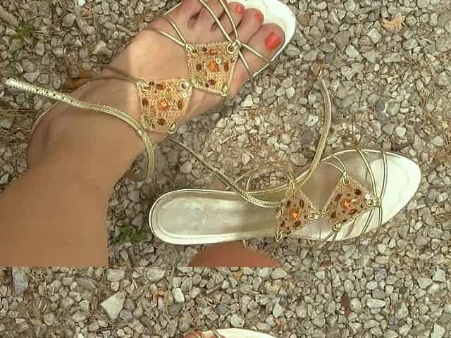 Super lengthy legs, High heels. Laony has pleasure with a sex toy on a high chair.