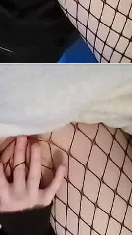 Masturbating My Pussy in Fishnet Tights with My Legs Spread