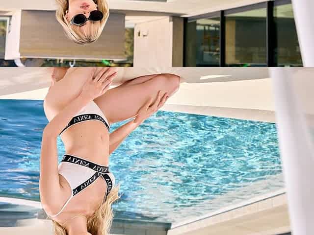 An awesome sideways pose fuck with a long-legged blonde Alexa Rae