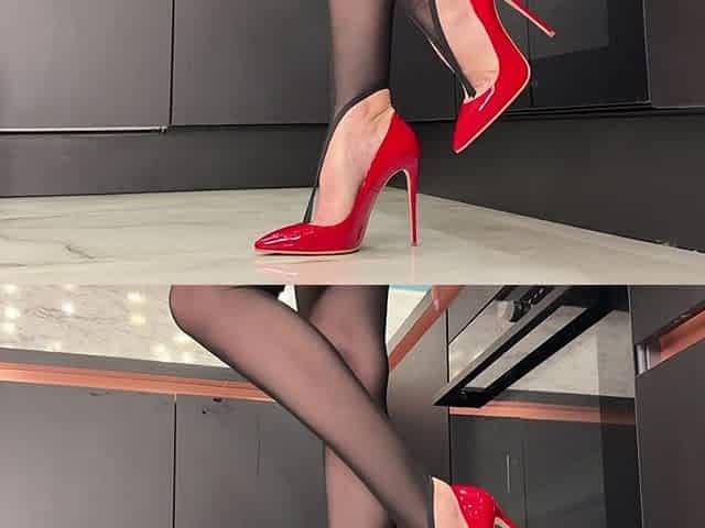 My New Nylon Leggings, Black High Waisted Stirrup Leggings and My Red Stiletto High Heels, 12 Cm Heel
