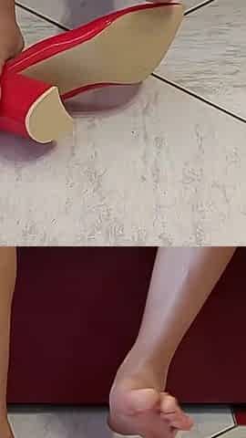 Shy Asian Feet Meet Red High Heels for 1st Time - Foot Fetish Tease Play - Cute Toes Play with Sexy Shoes