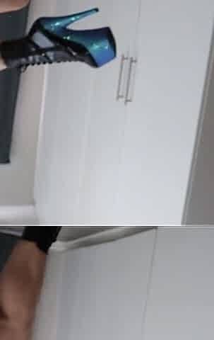 Girls Only Apartment in Japan, a Room Where Watch Highcut Thong Leotard Girl During a Fitness Break From Under the Desk