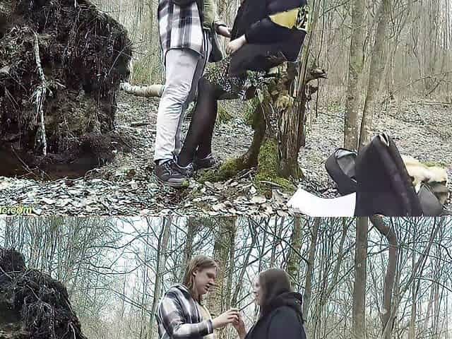 Crazy outdoor sex with a tattooed girlfriend and a horny dude