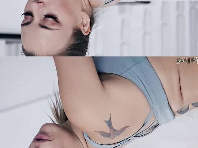 Tattooed hottie Eva ray removes everything and spreads legs