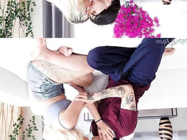 Nasty double penetration with a hot blonde girlfriend Cheerleader Kait