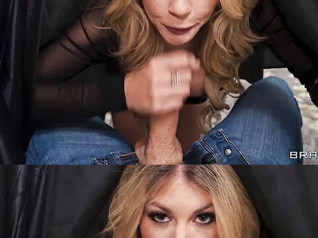 Slutty blonde with good ass Briella Bounce jumps on a big wiener