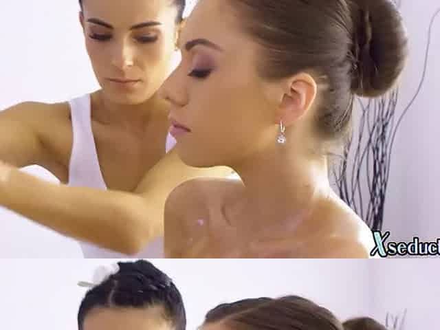 Sensual Lickers lesbian sex scene: Blonde, Brunette Small Tits Porn