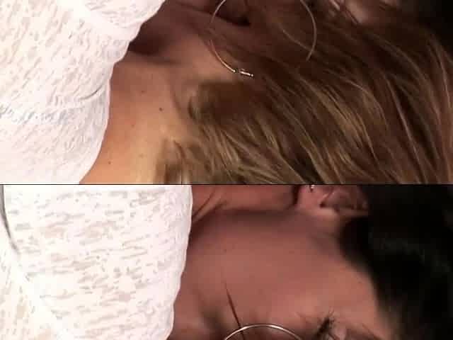 Brunette And Blonde Lesbian Babes Dildoing Pussy