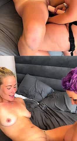 StrapOn Lesbian with big boobs fucks her blonde sexy GF