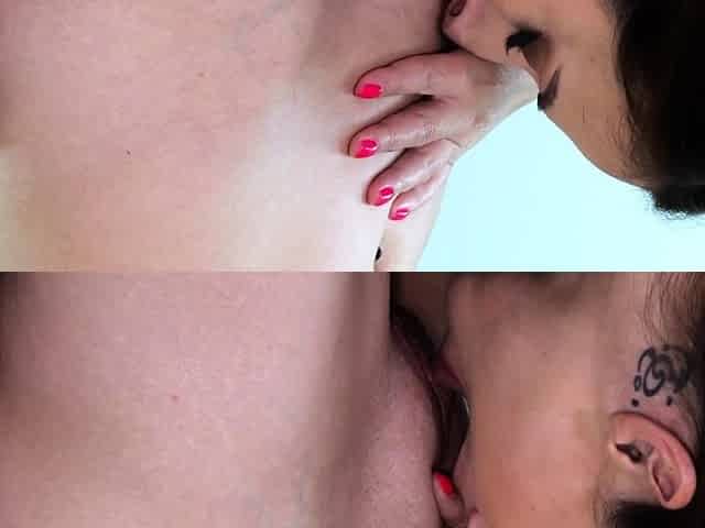 Busty Lesbian Babes Indulge in Passionate Boob Worship