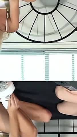 Blonde and brunette lesbo licking and fingering
