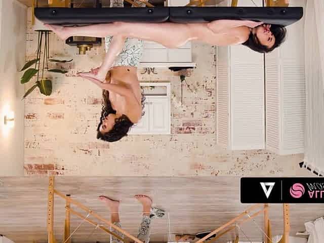 Sweet ballerina fucks anal toys in a trio with a double dildo