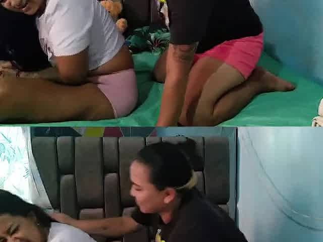 LEZ MASSAGE - Lez massaging floozy seduces breasty mother I'd like to fuck and eats her twat