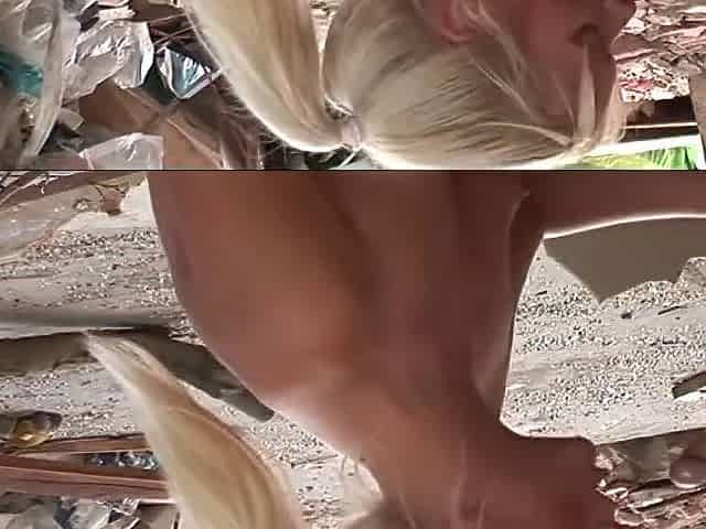 Two horny Euro lesbians get ass fucked by two studs in an abandoned building