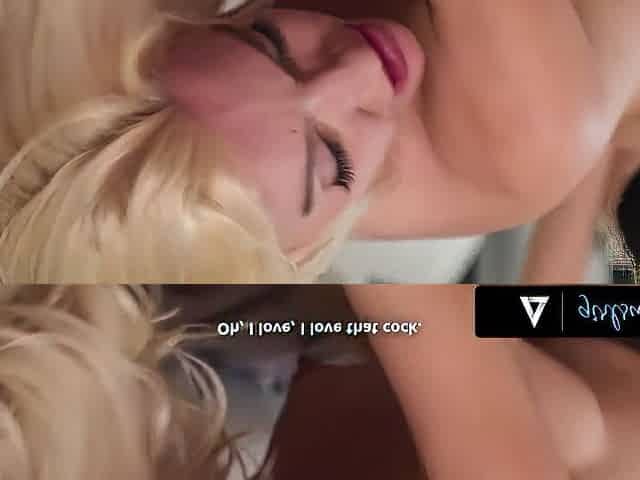 StrapOn Lesbian with big boobs fucks her blonde sexy GF