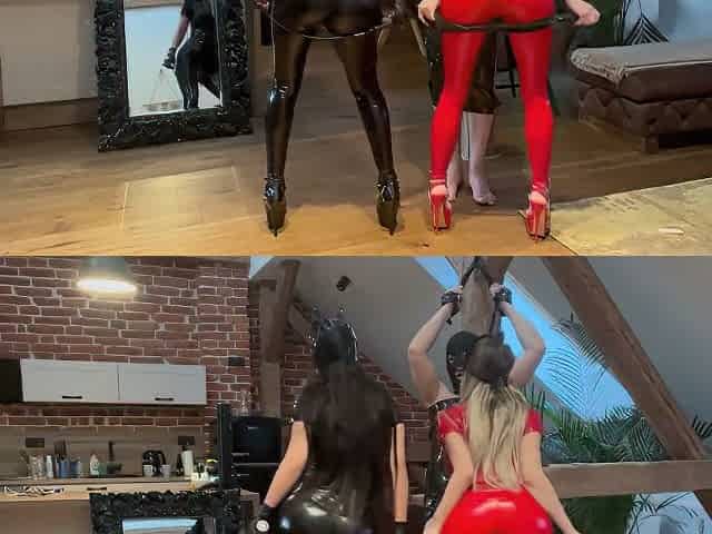 Two Latex Clad Lesbians Tease Slave Bdsm