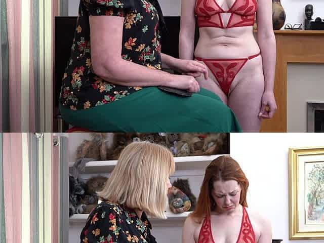Lesbian Mistress humiliates naked slave