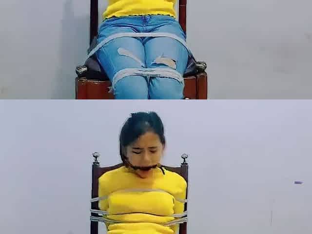 Seductive tied up lesbian submissive enjoys draining experience with mistress's panties
