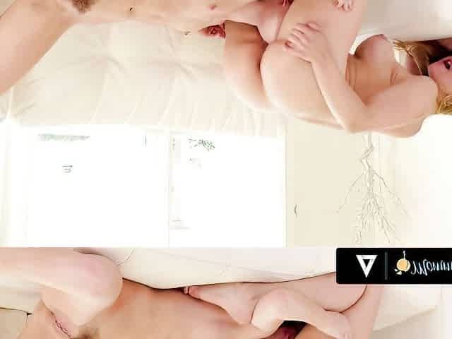 Lovely Petite Blonde Cutie Surrenders To Her Sexy Dominant Brunette GF And Her Huge Strap-on