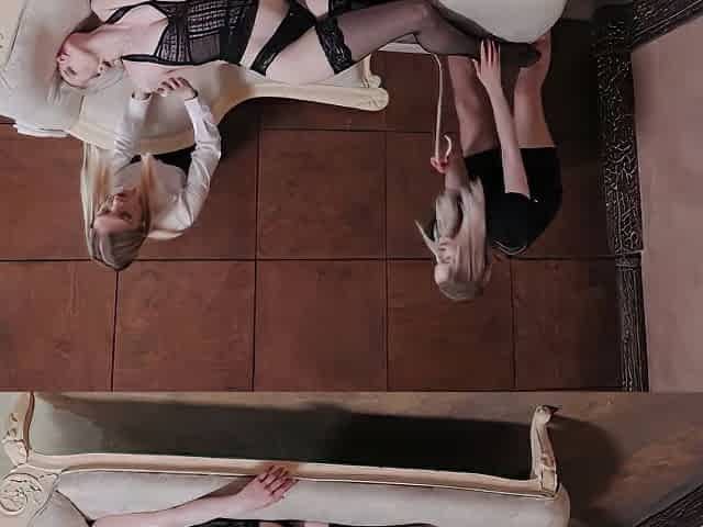 Lesbo Femdom Teasing For Golden-Haired And Brunette Hair