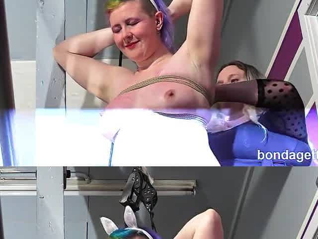 Bent Over Strapon Bound and Submissive Lesbian Slave Orgasms