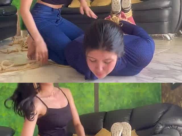 Bossy Girl Hogties And Gags Barefoot Roommate
