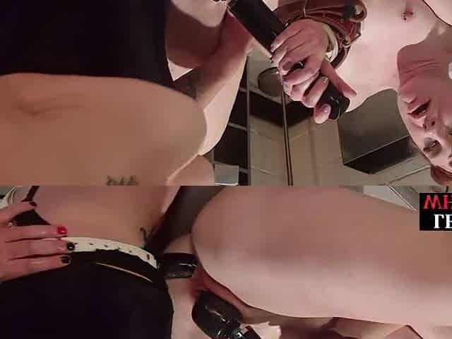 Horny Lesbian Mistress Pushing Big Strapon Deep In Slave's Pussy