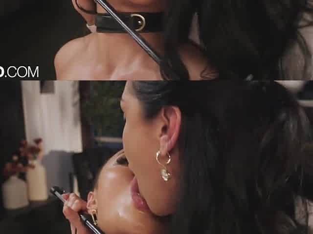 SLAYED Bitch Goddess Vicki crops & collars her avid sub Kazumi