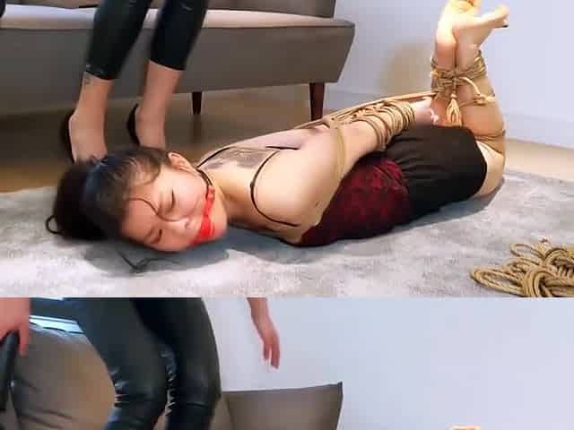 Busty Tied Up Lesbian Slave Whipped By Dominant Madame