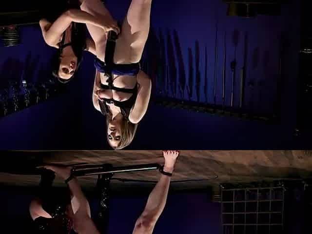 Bent lesbian in strappado rough whipped