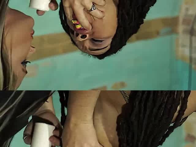 Little Slut Eats Squirt While Having Her Feet Shocked P3