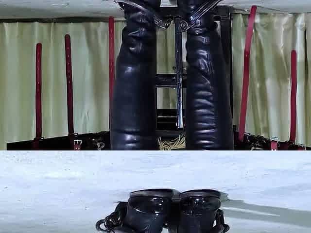 Suspension bondage lez MILF pussy tormented by lezdom Ebony