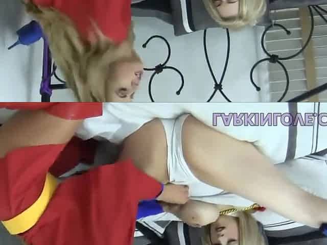 Some Horny Slut Tied Up On The Bed By A