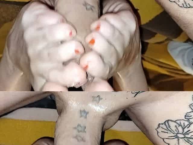 My wife giving a footjob to my most good ally in front of me turns me on so much