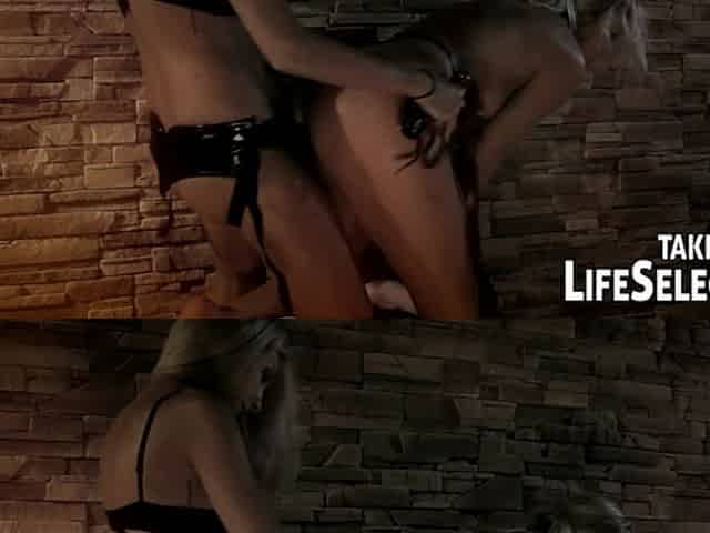 Mature lesbian couple Marina Gold and her partner play with fetish toys