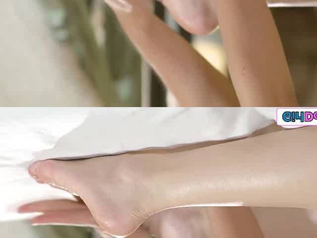 Foot massage, shaved pussy