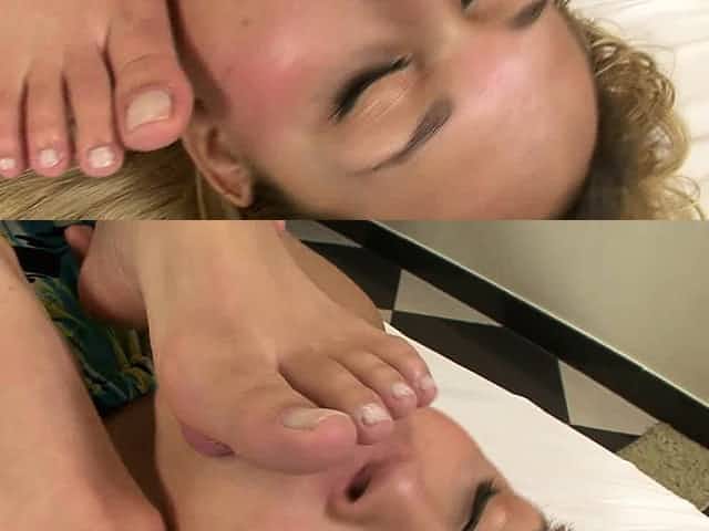 Slim teen Rachel James loves to eat pussy and she has a foot fetish
