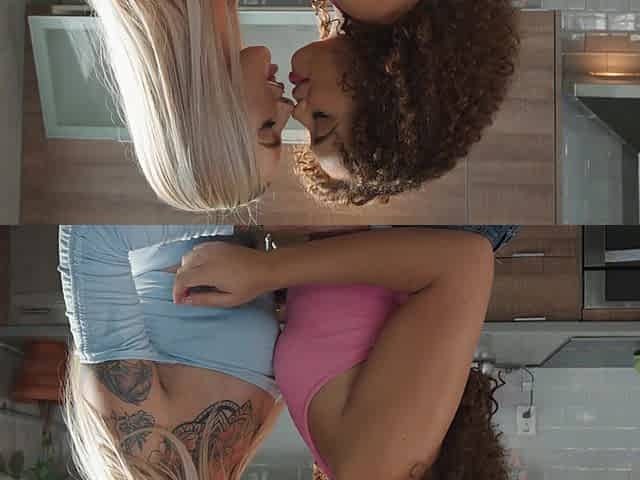 Blonde babe sucks her ebony gf feet after work and they trib
