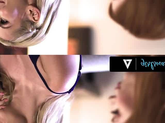 Sapphic sluts Jenna Reid & Serena Blair wearing fishnet lingerie