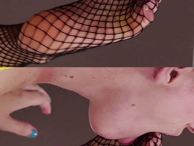 Lesbian fishnet stockings feet licking!