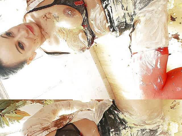 Busty lesbian milfs pouring feet into chocolate and sucking each other toes