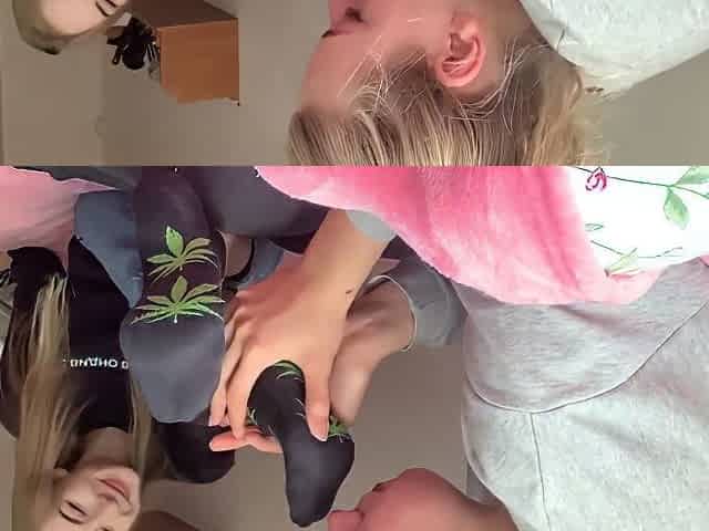 Two Playful Dolls Put Some Sexy Socks On Their Teen Feet And Pose