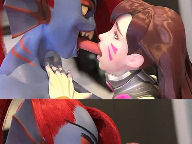 Unfathomable Giving a kiss - Undyne & D.va - Ayasz