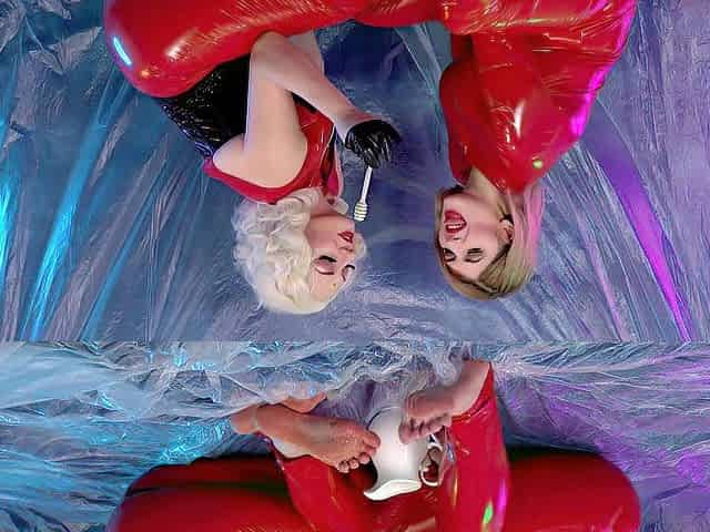 Coarse Lesbo Latex, Foot, Squirt and Void urine Domination with Dolly Dyson & Mia Stone