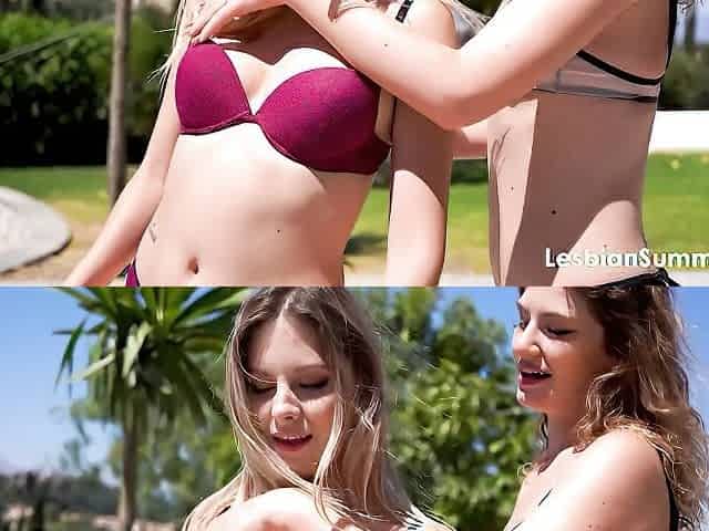 Outdoor lesbian play with Rebecca Volpetti and Candice Demellza