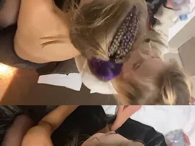 Breasty Tiny Blond and Latin chick Lesbo Lick Fest with Groaning and Giving a kiss