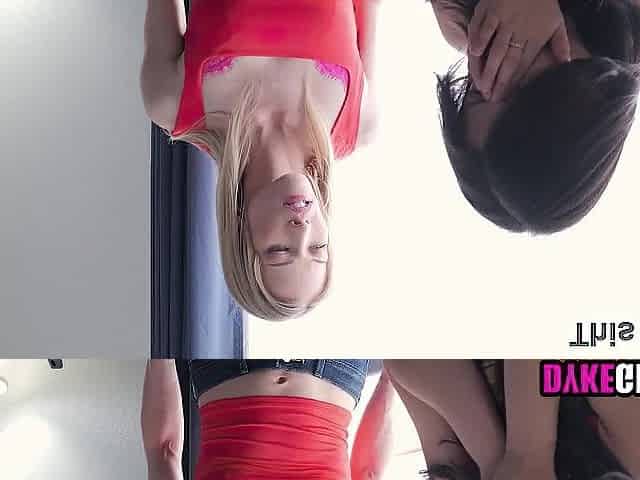 Watch this big tit blondie lesbo babe making out with her petite roommate