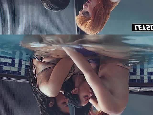 Lesbo Superlatively good Allies Lesbo Touching and Giving a kiss in the Pool - A GAL KNOWS